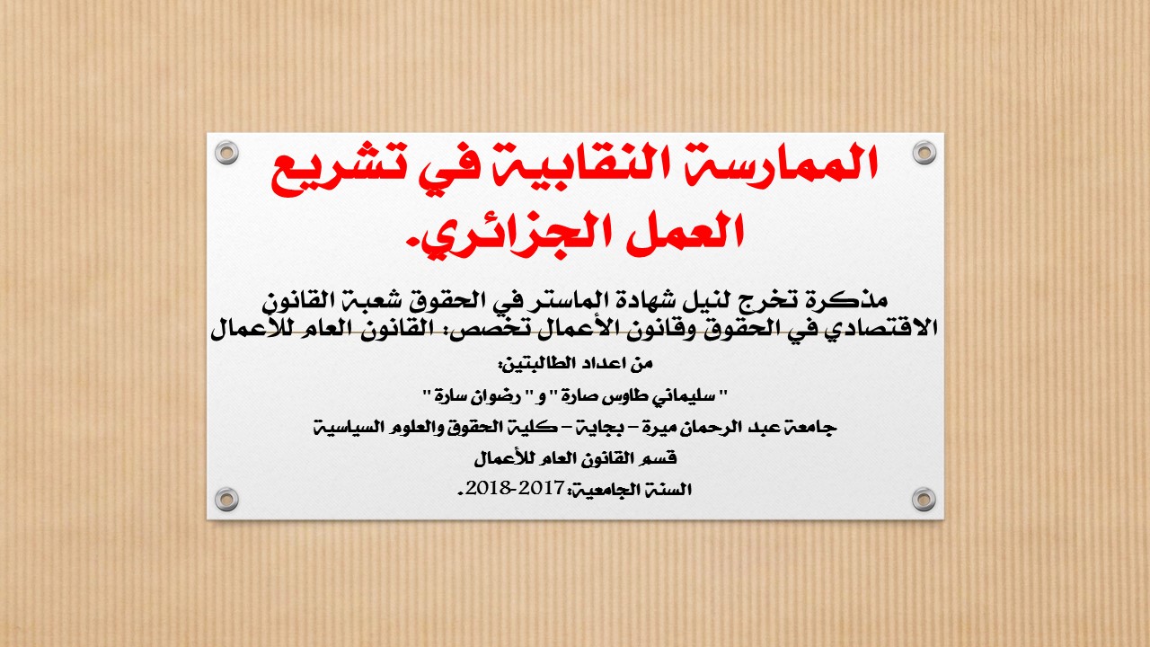 الممارسة النقابية في تشريع العمل الجزائري.